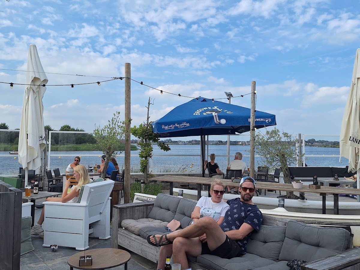 It is a very chill spot with a nice view on the water. Perfect for a relaxed evening in the summer sun, eat with and/or have some drinks with friends and/or Friendly staf,f, sometimes a bit slow but all in all good customer service. Atmosphere of a typical beach bar. The pictures look nicer than it actually is, some maintenance/ upkeep would definitely help balancing out the price-performance ratio.